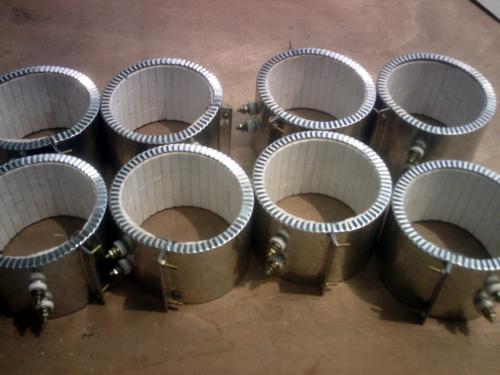 耐高溫陶瓷電熱圈采用的不是一般云母撓線方式制作,而是采用陶瓷條穿絲方式,因此該產(chǎn)品的功率比普通的要高0.5~1.5倍。發(fā)熱體為進口圓絲陶撓成彈簧狀穿入陶瓷條圈成,外罩采用日本產(chǎn)不銹鋼,中間采用高溫隔熱保溫棉(硅酸鋁纖維板)防止溫度外泄。陶瓷條是高頻陶瓷具有傳熱快、堅硬不易碎、高溫不變形不易老化等特點。 陶瓷加熱圈簡要性能:其主要適用于擠壓、澆鑄和下沖式機械操作溫度可達到 450度,表面負載 6.5W/cm. 特點是壽命長耐高溫,能量消耗降低30%,絕緣性高,是目前擠出機、 注塑機、吹膜機最適用的電加熱產(chǎn)品。 陶瓷加熱圈具有安裝靈便,傳熱快,絕緣良好.制作不受型號和規(guī)格大小的限制等優(yōu)點。工作溫度高、升溫快、熱效率高、無污染、加熱均勻***。